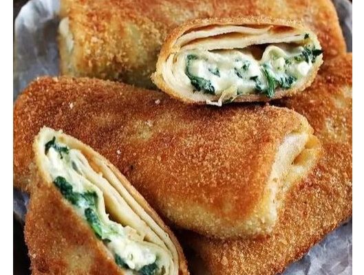 Sastojci za pohane palačinke sa sirom i špinatom: Za nadjev: 300 g špinata 150 g sira (npr. gaude) 150 g feta sira 3 žlice vrhnja papar Za pohanje: 1 šalica brašna 1 šalica krušnih mrvica 2 jaja Dodatno: ulje ili mast za prženje Pohane palačinke sa sirom i špinatom – priprema: Napravite palačinke. Špinat oprati…