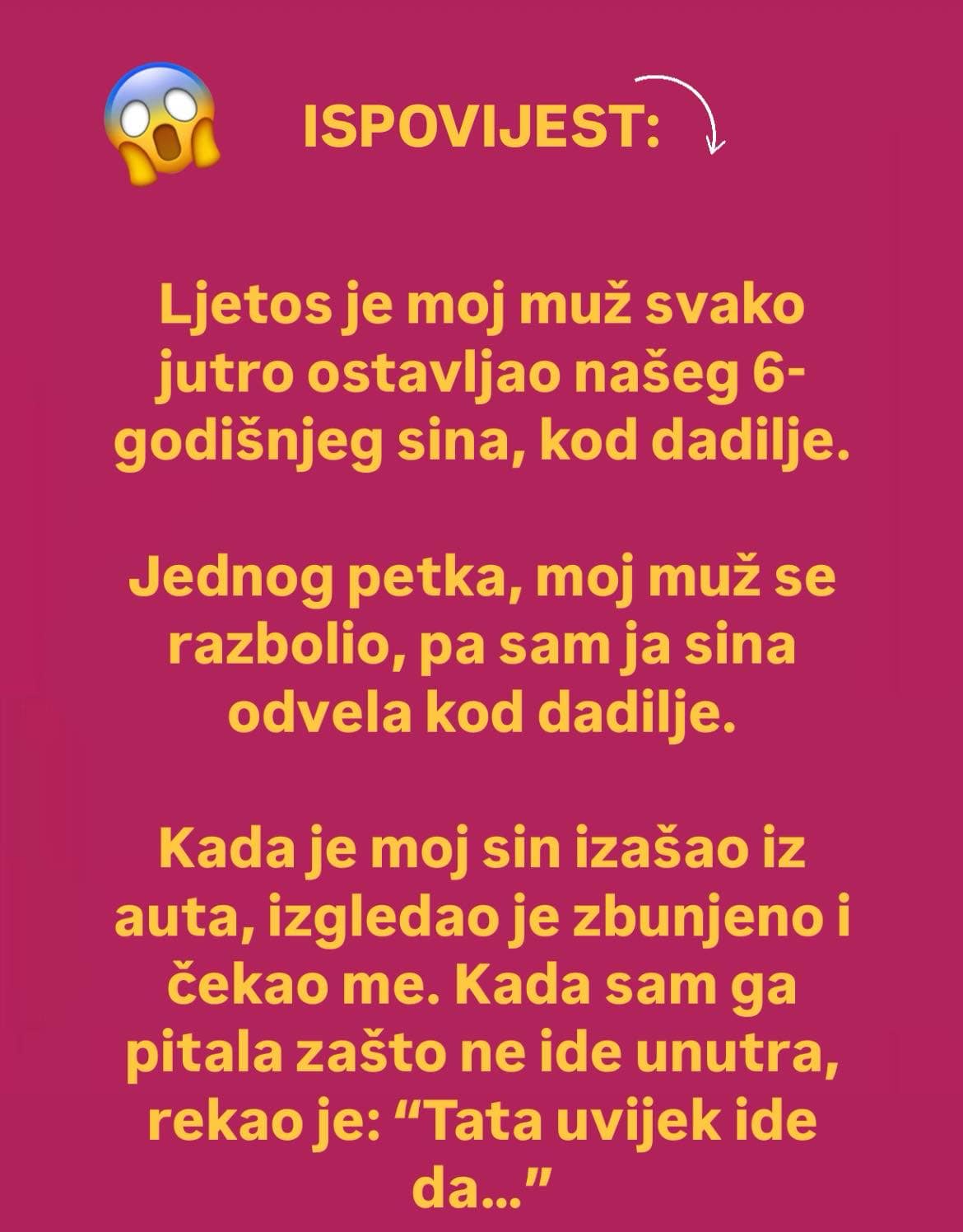 — Ljetos je moj muž svako jutro ostavljao našeg 6-godišnjeg sina kod dadilje.