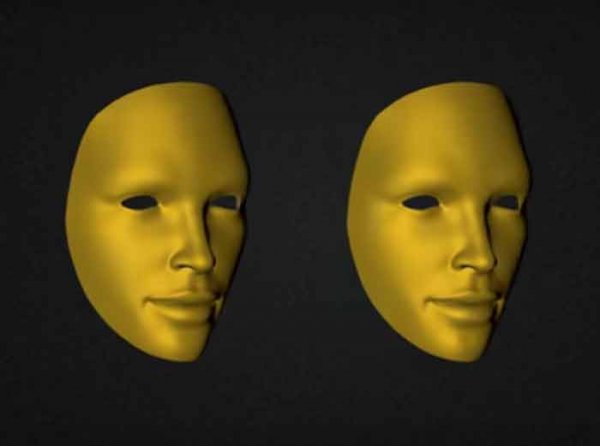 Šizofreničar nema tu imaginaciju. Njegov mozak ne može da nadje vezu između detalja. Tj. on vidi masku onakvom kakva je i nikako drugačije. Za njega je maska uvijek izdubljena s unutrašnje strane i okreće se samo na jednu stranu.