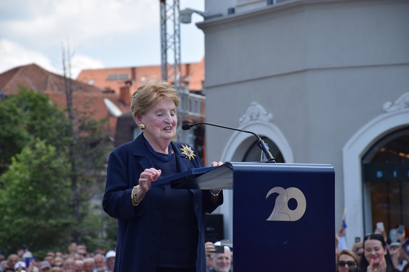 „Građani Kosova su uvek pokazivali svetu da su demokratska nacija. Građani su radili naporno da postave temelje demokratije. Vi ste stvorili nezavisne medije, nezavisno sudstvo. Konstruktivno ste radili sa međunarodnom zajednicom“, rekla je Olbrajtova i napomenula da će međunarodna zajednica uvek pratiti napredak Kosova.