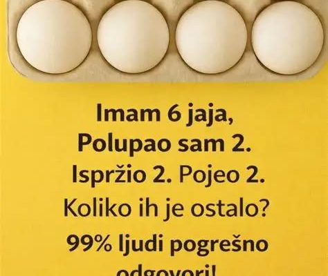 U današnjem članku vam pišemo o popularnoj mozgalici koja je nedavno postala viralna. Na prvi pogled, čini se kao jednostavan matematički problem, ali zapravo krije važno pravilo pažljivog razmišljanja i analize.Saznajte… Ova zagonetka o 6 jaja izazvala je mnoge ljude da donesu pogrešan zaključak. Kroz ovu zagonetku možemo naučiti kako važno pažljivo čitati i povezivati…