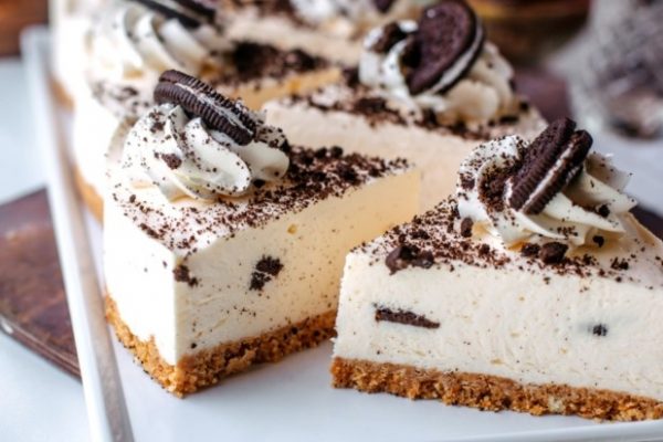 Sastojci: 28 Oreo keksa (bijeli dio ostružite nožem) 75 g otopljenog maslaca Nadjev: 500 g krem sira 100 g šećera 1 bourbon vanilin šećer 500 ml vrhnja za šlag bijela krema za Oreo kekse 1 vrećica želatine + 3 žlice vode 12 Oreo keksa, grubo nasjeckanih Priprema: Dno kalupa za tortu promjera 24 cm obložite…