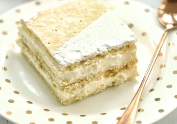 Sastojci: Za podlogu: 300 g mljevenog keksa (petit beurre ili plazma) 120 g otopljenog maslaca 100 ml mlijeka Za kremu: 2 pudinga od vanilije 800 ml mlijeka 6 žlica šećera 200 g maslaca (sobne temperature) 100 g šećera u prahu Za srednji sloj: 200 g keksa (kratko umočenih u mlijeko) Za gornji sloj: 200 ml…