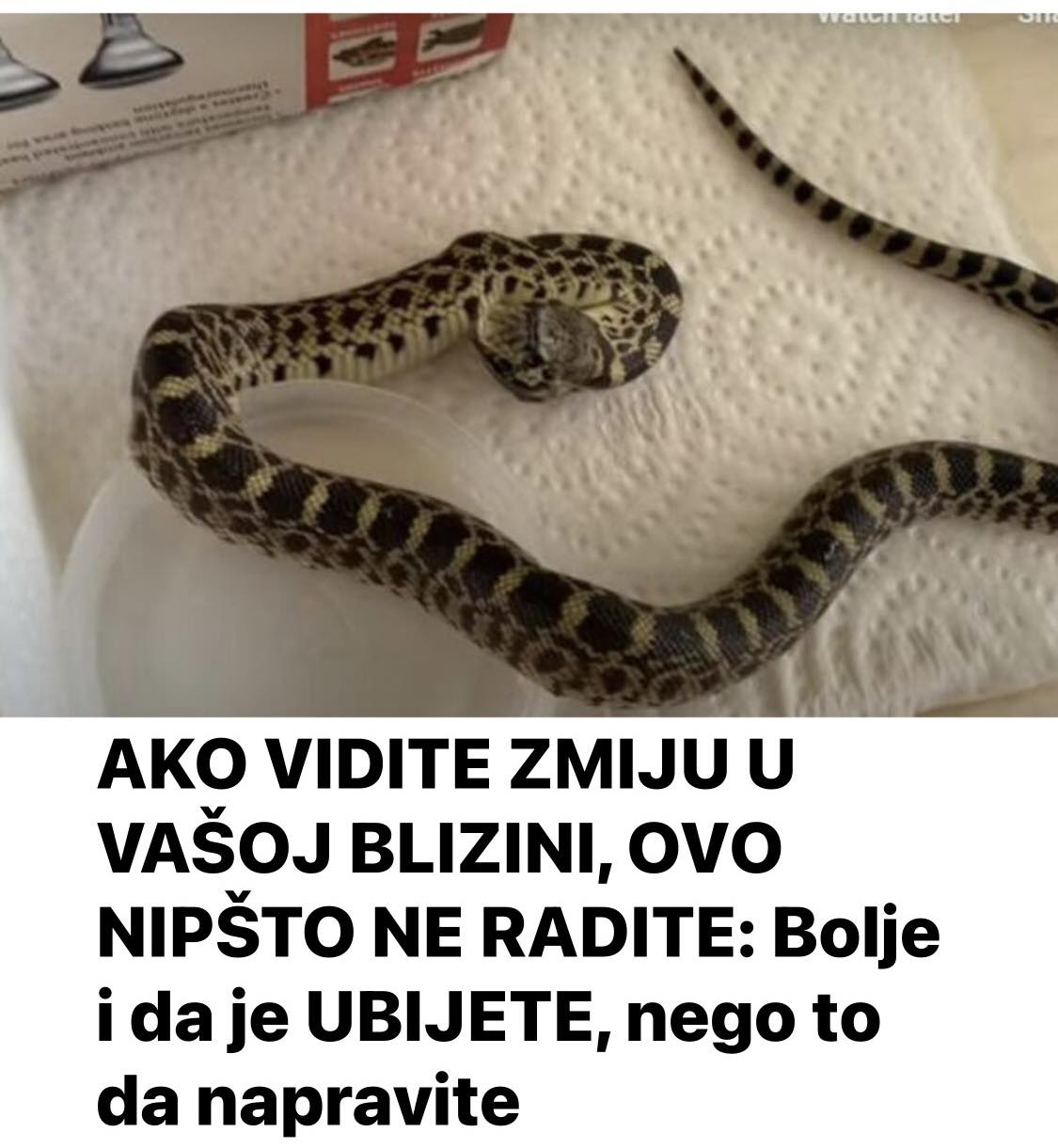 Zmije su korisne životinje i zaštićene su zakonom i kazne za ubijanje zmija su velike, a i da nisu, naša prva misao treba da bude bezbedno udaljavanje, a ne namera da naudimo životinji, navode iz Orke i nude uputstva kako da se ponašamo prilikom sustreta sa zmijom, piše N1.