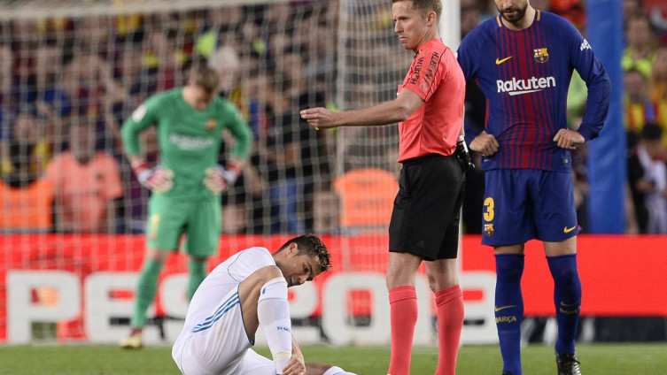 Naime, najbolji igrač Kraljevskog kluba, Kristijano Ronaldo (Cristiano Ronaldo) se tokom postizanja izjednačujućeg gola nakon duela s Pikeom (Pique) povrijedio.