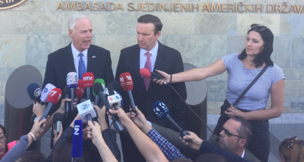 Sastanci senatora Rona Džonsona i Krisa Marfija održani su u američkoj ambasadi, ispred koje su se potom obratili medijima.