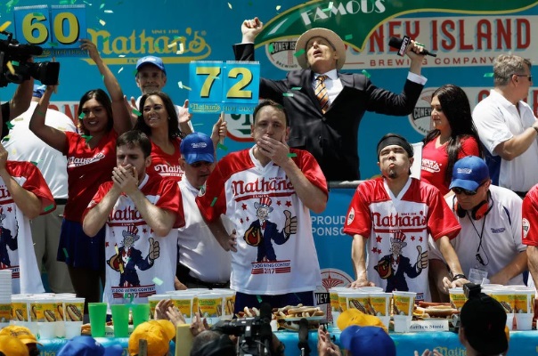 Na američki praznik Dan nezavisnosti, 4. jula, Joey Chestnut uspio je deseti put pobijediti na takmičenju hot dogova na Coney Islandu, sa 72 hot doga progutana u deset minuta.