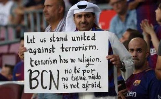 Navijači na tribinama Nou Campa nisu mogli sakriti suze, a jedan arapski navijač našao se u centru pažnje zbog sjajne poruke koju je držao tokom utakmice.