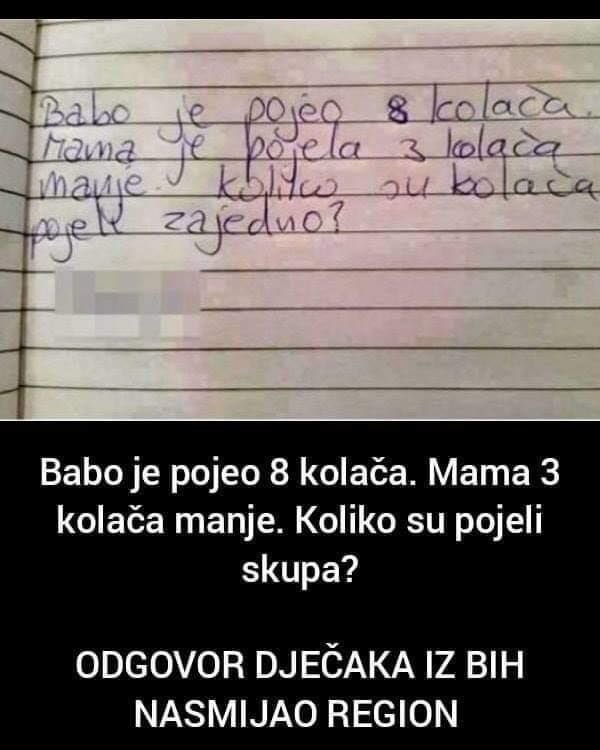 BABO JE POJEO 8 KOLAČA, MAMA JE POJELA 3 KOLAČA MANJE! Koliko su kolača pojeli skupa – ODGOVOR DJEČAKA IZ BOSNE NASMIJAO REGION