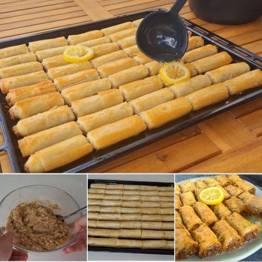 Uzmite noz i isijecite kako zelite. Otopite preostali puter i poklpite baklavu.