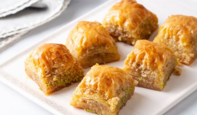 Istopite puter na tihoj vatri. Premažite njime dno pleha i poređajte jednu na drugu 10 kora, a svaku namažite istopljenim puterom. Izmešajte iseckane orahe, bademe, cimet i karanfilić. Rasporedite preko kora. Odozgo poređajte ostalih 10 kora jednu na drugu i opet svaku namažite istopljenim puterom, a i poslednju koru odozgo premažite. Isecite baklavu na kocke željene veličine. Pecite u zagrejanoj rerni na 150 stepeni oko dva sata, odnosno dok sve kore ne postanu zlatnosmeđe boje. Sirup: Prokuvajte šećer, vodu i cimet. Posle dva minuta dodajte med i kad se istopi sklonite sirup sa šporeta. Vruću baklavu prelijte hladnim sirupom.
