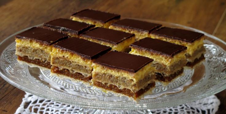 4.onda redjati oblandu (naopacki, znaci na male kockie filovati) 1. fil – oblanda – 2. fil – oblanda 3. fil – oblanda ostaviti je da se malo stegne pa je preliti sa cokoladnom glazuru