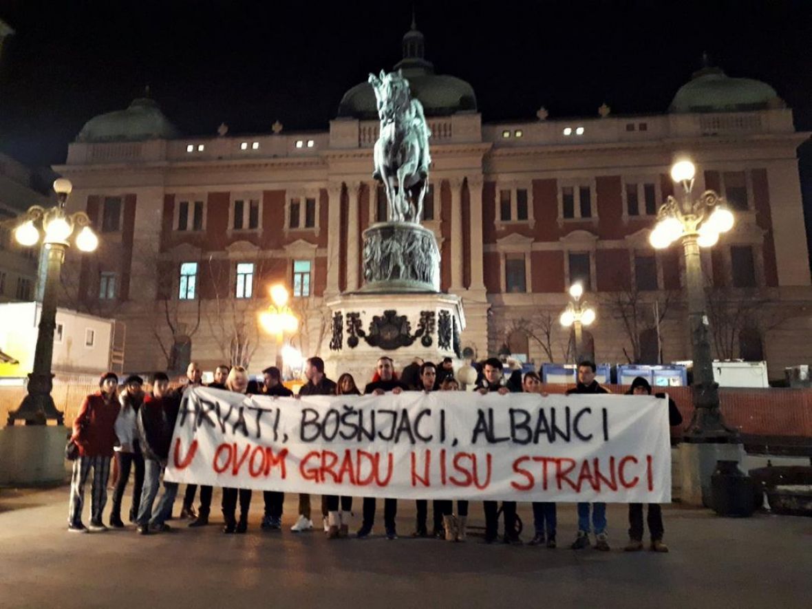Večeras je iz Beograda stigla nešto drugačije poruka. Dvadesetak mladih osoba odgovorilo je Delijama sa transparentom: