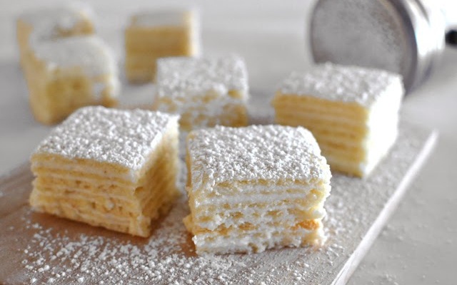 Vrhnje i šećer pomiješati te premazati kore. Zadnju koru posuti sa šećerom u prahu.