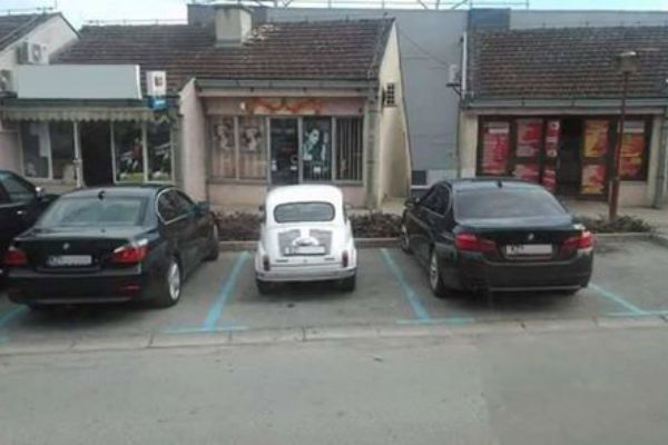 Popularna evergrin i nikad ne prevaziđena zastava 750, poznatija kao “fića” uslikana je navodno u mjestu Križevci u Hrvatskoj, i to udobno ušuškana između dva besna BMW-a.