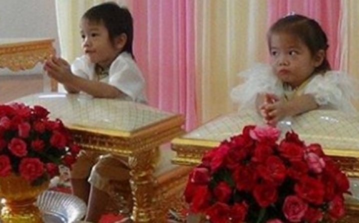 Teekat i Tawisa su brat i sestra iz Tajlanda. Ove trogodišnje blizance su njihovi roditelji natjerali da se ožene. Organizirali su im vjenčanje jer smatraju da su u prošlom životu njihova djeca bila ljubavni par. Morali su se oženiti da “izbjegnu lošu sreću”, prenosi DailyMail.