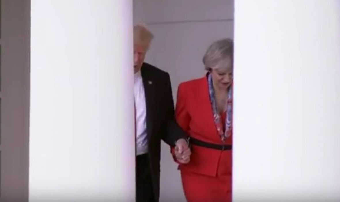 Theresa May i Donald Trump snimljeni su u Bijeloj kući kako hodaju, držeći se za ruke.