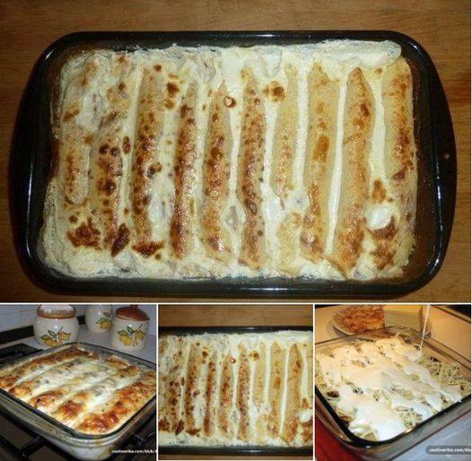 Zarolati palačinke i posložiti ih u prikladnu posudu za pečenje. Sve posipati naribanim sirom….. i preliti vrhnjem. Staviti u pećnicu, zagrijanu na 200°C, i peči 45 minuta, odnosno dok površina ne dobije lijepu rumenu boju. Poslužiti kao samostalni obrok za ručak ili večeru, ili pak poslužiti uz pečeno meso kao prilog.