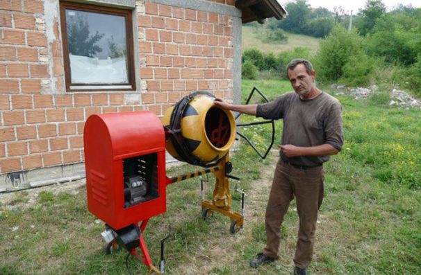 – Ovu mješalicu za beton obogatio sam inovacijama tako da kada završite mješanje betona, dobro je operete i onda služi kao veš mašina. Tačnije kaputa, radnih odijela, ručnika… Bijelo rublje ne može prati jer trebam još neke prepravke da može i njega oprati bez oštećenja.