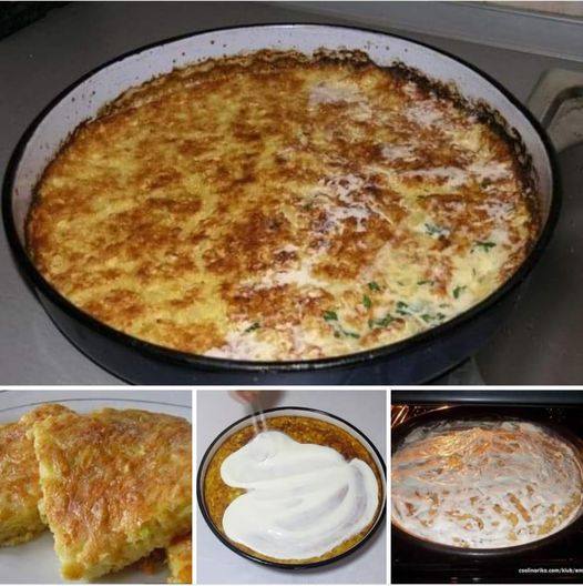 Smjesu dobro promješajte, zatim izlijte u veću tepsiju za pečenje koju ste prethodno zagrijali u pećnici a zatim pouljili. Na taj način će vam kora biti hrskavija i neće se ljepiti komadi za tepsiju kod vađenja.