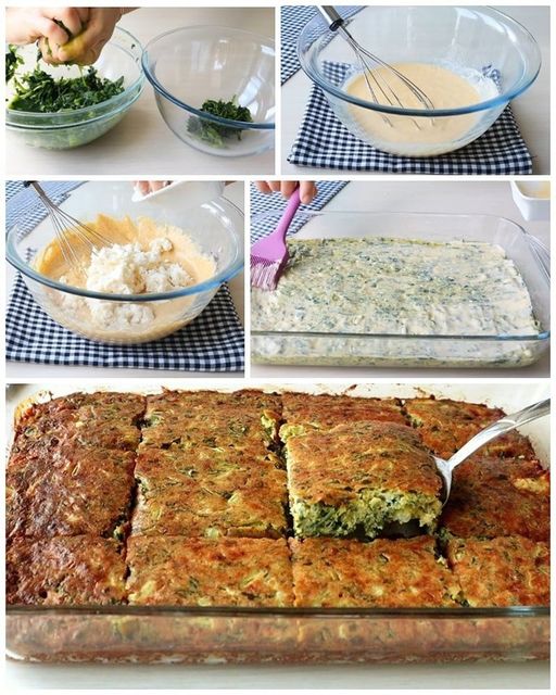 Smjesu stavite u tepsiju premazanu maslinovim uljem i ravnomjerno rasporedite. Po vrhu rasporedite naše podeljene 3 kašike smese.