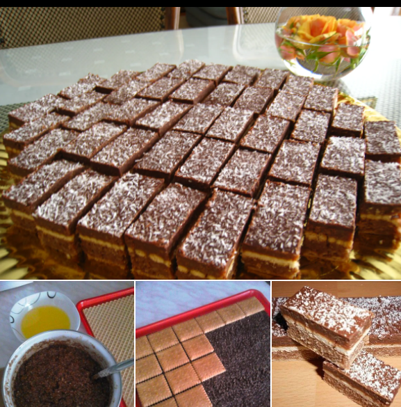 Sloj 1.: Šećer i vodu staviti na vatru i kuvati dok se šećer istopi pa dodati margarin i čokoladu da se istopi. Skinuti sa vatre i dodati kokos i mleveni keks.