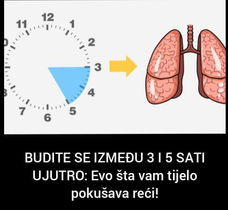 Ovo doba dana povezano je s plućima koja sakupljaju kisik, šalju ga u ostale organe i pripremaju tijelo za novi dan. U to vrijeme pluća se čiste. Ako se budite između tri i pet u noći, to može biti znak da su vam pluća preopterećena zagađenim zrakom ili porokom poput cigarete, ali i teškom hranom.