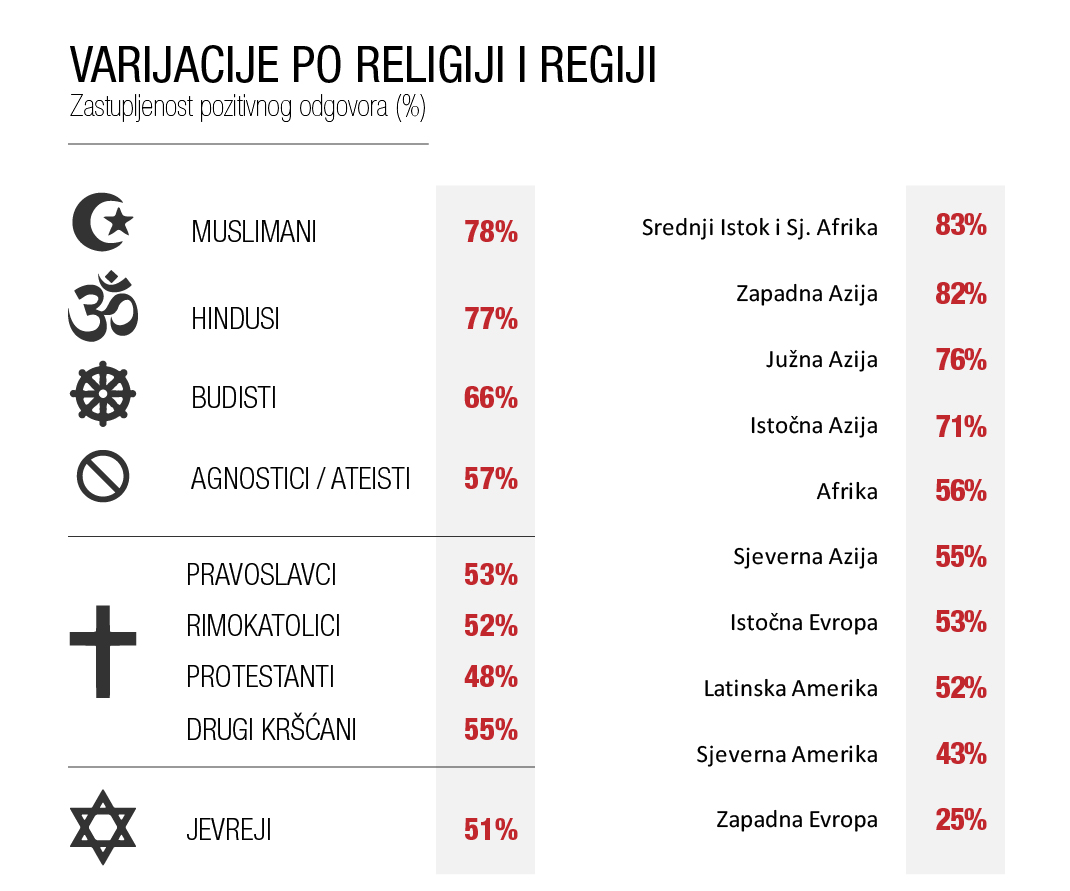 Istraživanje je uključilo i podatke o vjerskoj pripadnosti ispitanih.