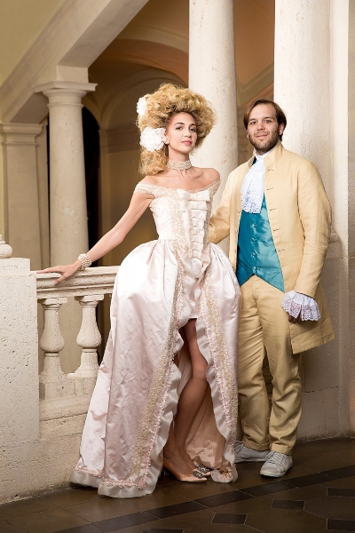 Slavlje je počelo veče prije vjenčanja na tematskoj zabavi u Palazzo Taverna, a tema je bila “Opasne veze”, roman o francuskoj aristokratiji iz 18. stoljeća. Gosti su bili odjeveni u kostime iz tog perioda, a mlada je nosila frizuru u stilu Marije Antoanete. Sljedećeg dana mladenci su se zakleli na vječnu ljubav u crkvi Svetih apostola u Rimu iz 6. stoljeća, gdje su se vjenčali i Josephovi roditelji 33 godine ranije.