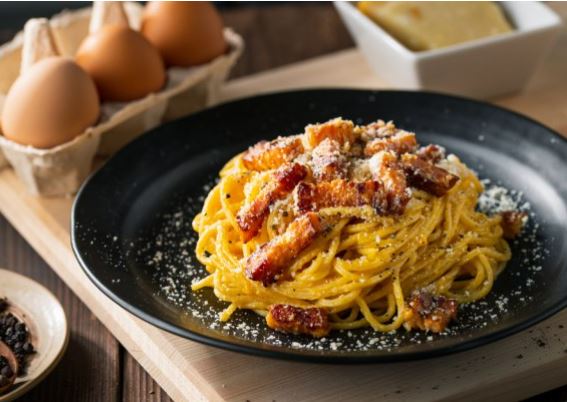 U zdjelici pomiješajte jaje, vrhnje za kuhanje, parmezan i začine, a pancetu narežite na sitne kockice.