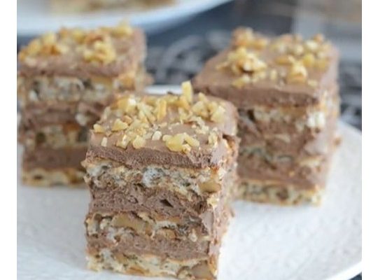 Sastojci: Biskvit s makom (količina za 2 biskvita): 6 bjelanjaka 6 žlica šećera 100 g mljevenog maka 2 pune žlice brašna 2 žlice ruma 2 žličice praška za pecivo Bijeli biskvit: 3 bjelanjka 3 žlice šećera 40 g brašna 2 žlice ulja 1 žlica ruma 1 žličica praška za pecivo Krema: 700 ml mlijeka 200…