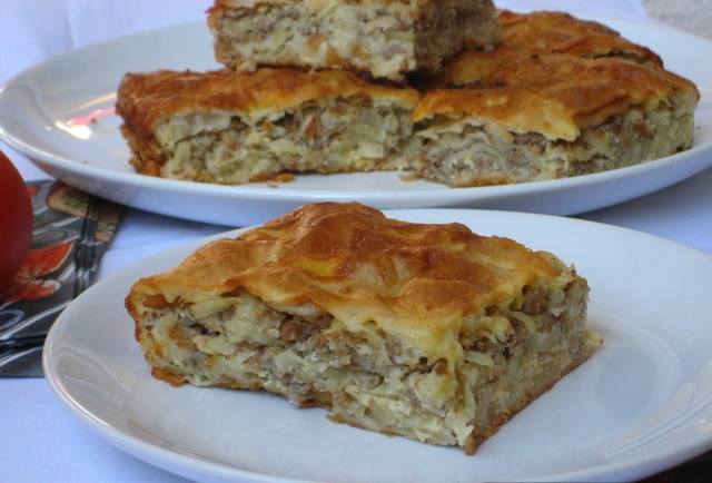 Sastojci: Za tijesto: 200 gr mekog brašna 200 ml tople vode kašičica soli i još ulje za ‘’dodatne’’ radnje I jedna neobična ideja za fil: 2 veće glavice crvenog luka 400 gr miješanog mljevenog mesa 800 gr krompira 1 malo vrhnje za kuhanje, sa okusom parmezana (preporučujem, a može i neko drugo) začini sol, vegeta,…
