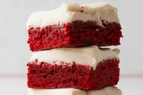 Sastojci: Za podlogu: 1/2 šalice otopljenog maslaca 1 šalica šećera 2 velika jaja 1 žličica ekstrakta vanilije 1 žlica crvene boje za hranu 1 žličica bijelog octa 1/4 šalice kakaa u prahu 3/4 šalice glatkog brašna 1/4 žličice soli Za cheesecake sloj: 450 g krem-sira 1/2 šalice šećera 2 velika jaja 1 žličica ekstrakta vanilije…