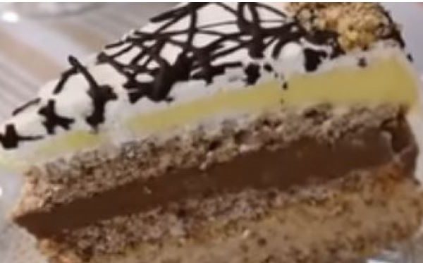Sastojci: Biskvit: 4 jaja 4 žlice šećera 4 žlice tople vode 4 žlice oštrog brašna 2 žlice kakaa 1 prašak za pecivo 150 ml čokoladnog mlijeka Svijetla krema: 1000 ml mlijeka 6 žlica šećera 1 žličica arome vanilije 120 g škrobnog brašna (gustina) 200 g maslaca Tamna krema: 500 ml vrhnja za šlag 200 g…