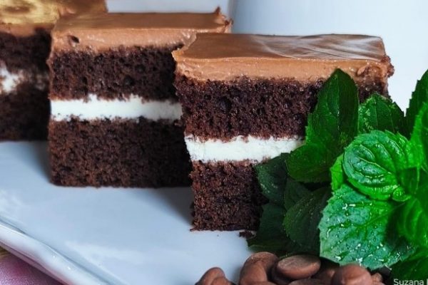 Sastojci: 400 g mlevenog keksa 3 banane 400 g tamne čokolade 30 g bele čokolade Kalup za pečenje (20×20 cm) Priprema: Ako volite bogat ukus čokolade i jednostavne deserte bez pečenja, ove lažne bajadere će vas oduševiti. Savršena kombinacija keksa, banana i dve vrste čokolade čini ih brzom i ukusnom poslasticom za svaku priliku. Banane…