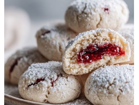 Keksići s malinama – sastojci: 120 g maslaca (sobne temperature) 80 g šećera u prahu 1 vanilin šećer 1 jaje (veličina M) 250 g glatkog brašna ½ praška za pecivo prstohvat soli gušći džem od malina (cca 120 g) šećer u prahu Keksići s malinama – priprema: U većoj zdjeli pjenasto izmiksajte maslac sa šećerom…