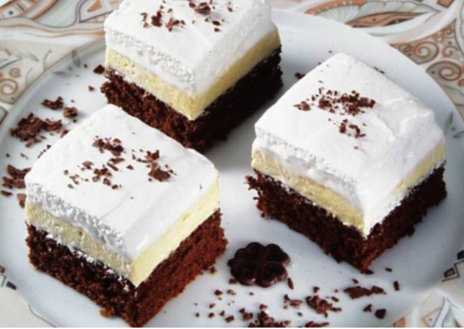 Priprema pjene: bjelanjke isucite, dodajte šećer, tucite na pari još oko 10 minuta, a zatim dodajte sok od limuna.Kolač ohladite i narežite na kocke.