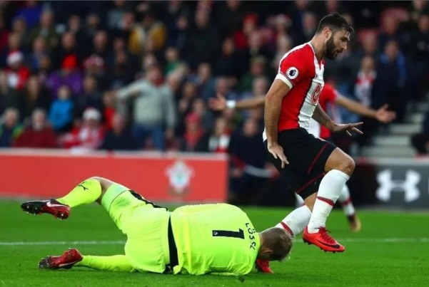 Najbolji strijelac Southamptona je u 33. minuti susreta u pokušaju da dođe do lopte udario golmana gostiju Jonasa Lössla u glavu, a arbitar Probert je dosudio samo prekršaj jer je smatrao da Austin nije namjerno povrijedio protivnika.