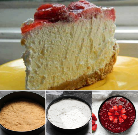 Na kraju jagode prokuvajte sa šećerom i sa 1 dl vode.Tome na kraju dodajte jedan pripremljen želatin i dobro promešajte.Kada se ohladi prelite ga preko kolača.Stavite u frižider da se dobro stegne.