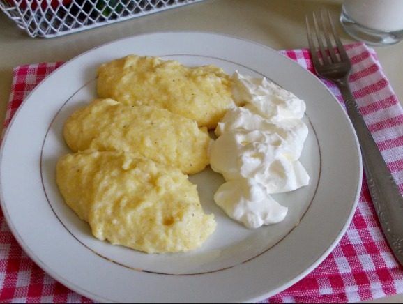 Staro, skoro zaboravljeno jelo, ja je obožavam :)Sastojci:2 dl vode,2 dl mlijeka,300-400 g sira ili kajmaka,8 kašika kukuruznog brašna,1 kašika,masti nerastopljene (ako se koristi kajmak ne treba),1 kašičica soli.