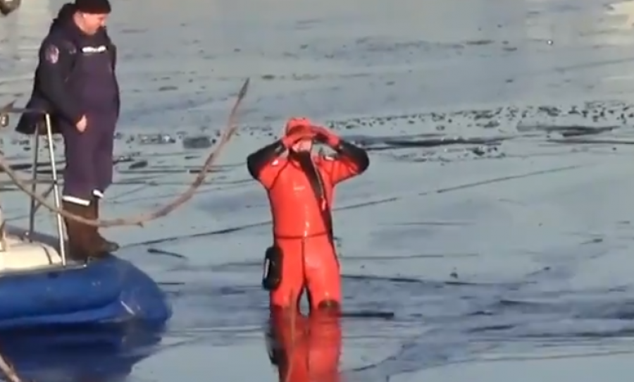 Uprkos hladnoći, spasilac je uspio da spasi patku iako su prilikom spašavanja pucale ledene kocke.