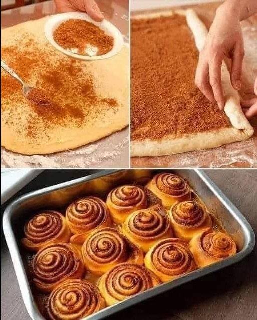 Pomešajte rastopljeni puter, šećer i cimet. Razvucite testo u pravougaonik i pramažite ga filom od cimeta i šećera, pa urolajte. Nožem isecite rolnice, stavite ih u pleh i ostavite da još malo rastu.