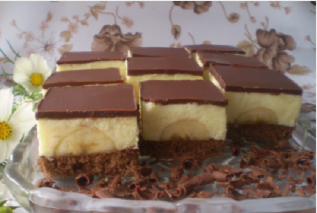 Sastojci:3 vrećice pudinga od vanilije;300 g keksa;9 žlica šećera;1 l mlijeka;200 g maslaca;1 kiselo vrhnje;100 g čokolade za kuhanje;5 banana;300 ml slatkog vrhnja;maslac za premazivanje kalupa