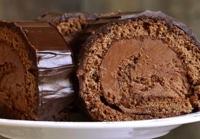 Zatim rolat premestite u frižider sat vremena. Kada je ohlađen, prelite ga čokoladnim prelivom i ukrasite po želji.
