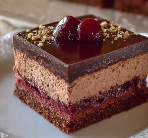 Umutite 300 ml slatkog vrhnja u čvrsti šlag. Otopite čokoladu u preostalih 50 ml vrhnja, pa ju lagano umiješajte u šlag. Rasporedite je po ohlađenom biskvitu i stavite u hladnjak na sat vremena.
