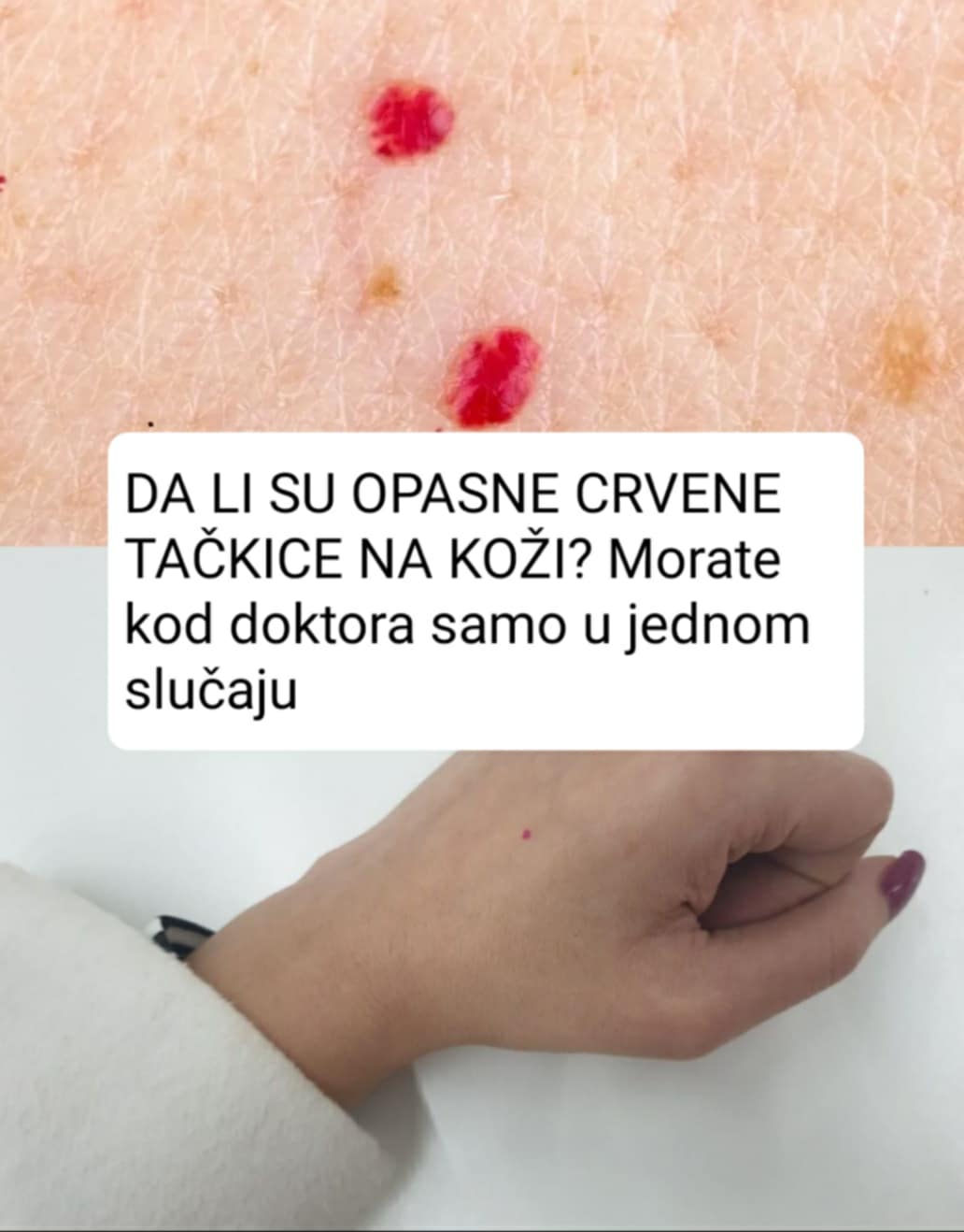 Ako primetite da se crvena tačka neočekivano promenila u veličini, obliku ili je počela da krvari, obratite se lekaru.
