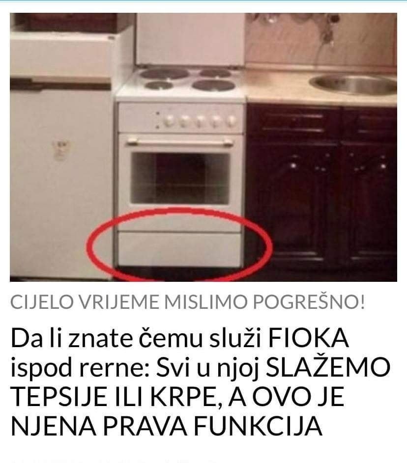 Ta fioka zapravo služi za održavanje jela toplim. Ona je “topla fioka” u koju možete staviti hranu nakon pečenja i ona će ostati na temperaturi za posluživanje.Ako još uvijek imate uputstva sa svojom rernom, provjerite šta piše. U većini njih stoji opis poput ovog: Topla fioka osmišljena je da sačuva toplotu vruće hrane na temperaturi za posluživanje. Uvijek u nju stavljajte vruću hranu. Hladna hrana ili ona na sobnoj temperaturi ne može se ugrijati ili kuvati u “toploj fioci”, piše Redbookmag.Ako je do sad niste iskoristili, može vam poslužiti kada vam gosti kasne da održite jelo toplim.
