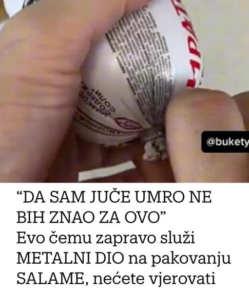 Odgovor na ovo pitanje možete pronaći u snimcima Instagram profila “buketyildirims”, gdje je sama žena, na svoje iznenađenje, otkrila drugima koja je svrha metalnih dijelova i kako pravilno skinuti omot sa salame.