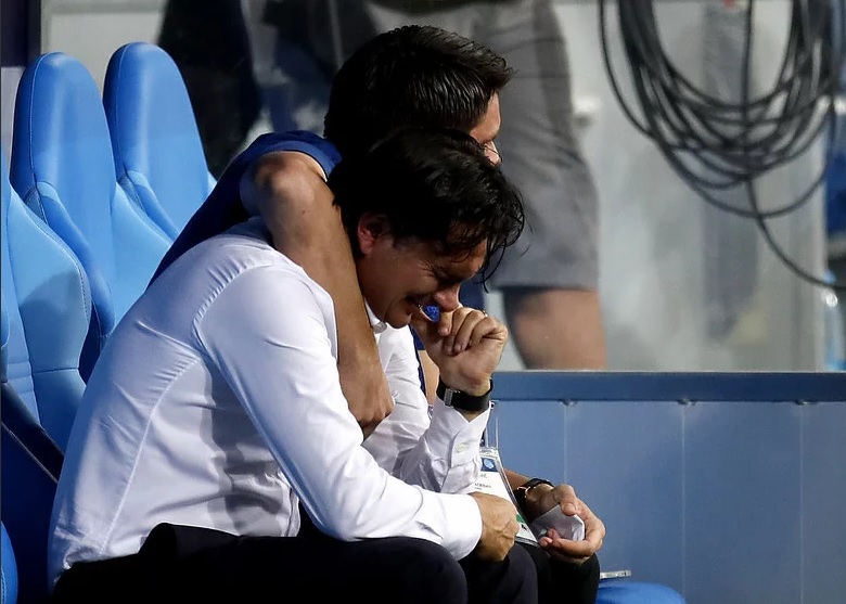 Hrvatski selektor Zlatko Dalić nije mogao gledati kako Ivan Rakitić izvodi posljednji jedanaesterac. Na kraju se rasplakao u zagrljaju svog skauta i bivšeg reprezentativca Ognjena Vukojevića.