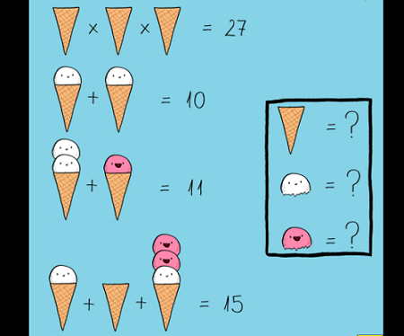 Ukoliko ste došli do rešenja da je vrednost korneta tri, bele kugle dva, a roze kugle jedan, uspeli ste, čestitamo!